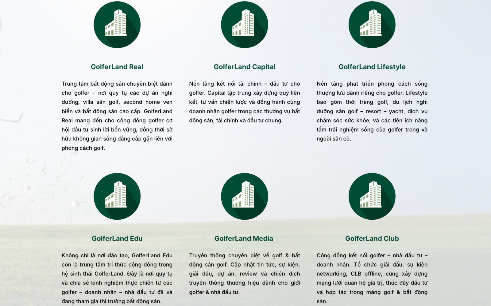 - GolferLand Edu: Hệ thống đào tạo, chia sẻ kiến thức về BĐS và đầu tư.